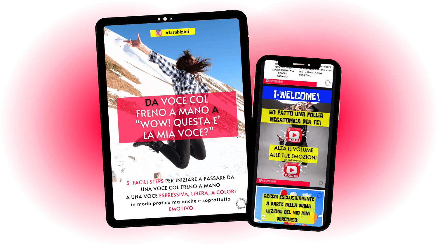 In primis la follia più grande di tutte: ho deciso di regalarti ESCLUSIVAMENTE parte della prima lezione del mio mini-percorso "VOCE A COLORI CON LE TUE EMOZIONI" per farti iniziare a sentire la tua VERA VOCE senza fare nemmeno una nota! Questa guida nasce per farti sperimentare nell'immediato che la tua voce può assolutamente essere diversa già OGGI iniziando ad ammorbidire ciò che la frena. Nasce per farti capire davvero cosa conta per riuscire a sentire la tua voce dei sogni senza più sentirti sempre incapace e/o insicur@, proprio come me molti anni fa.